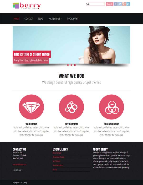 By admin on Fri, 09/20/2013 - 05:55 Forums: AnnouncementI am very happy to announce and introduce our second theme and first free theme Berry Read more, Demo and Download Berry theme http://drupar.com/theme/berry Log in or register to post comments